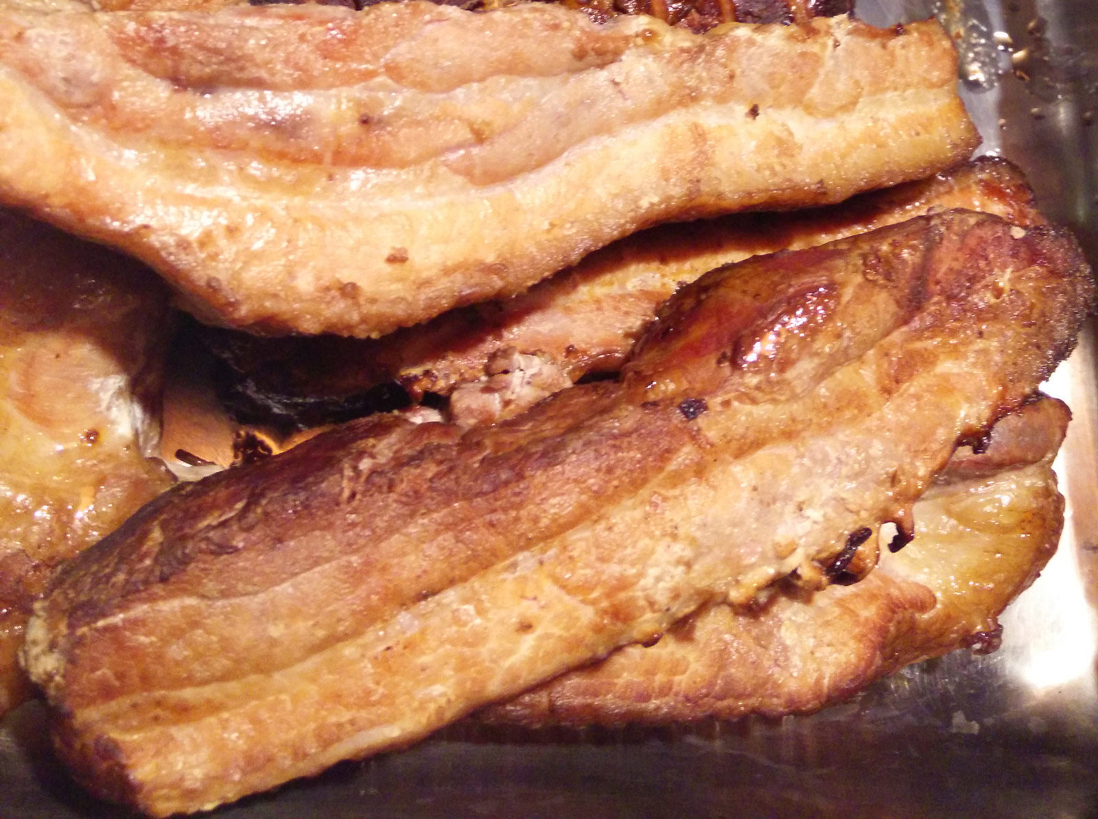 Pero buscando en Internet, se llega a casi cualquier dato. El método de elaboración de panceta ahumada tradicional es así: primero se sala todo el bloque de panceta, en seco y con sal gruesa, dejándolo estacionar durante algunos días para que la carne se sature en sal.